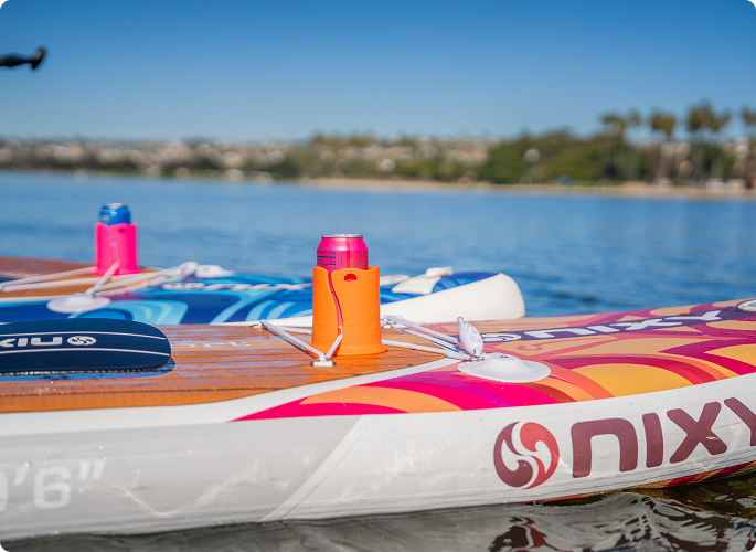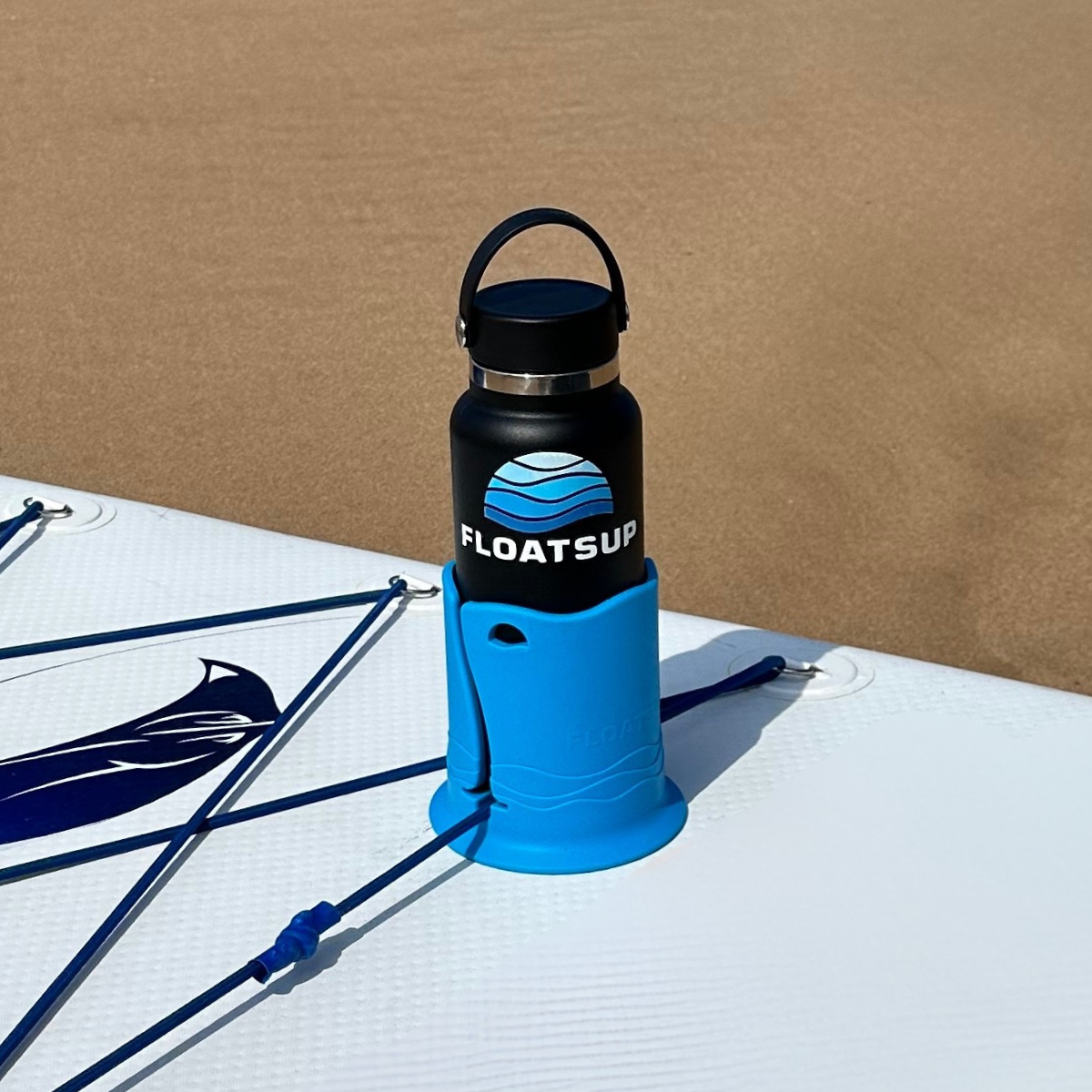 The patented Floatsup® Cup is an innovative can, bottle, and drink holder for paddle boards and kayaks. It installs easily on existing bungee cords! Now in JUMBO size too!